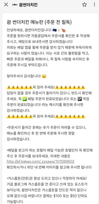 ✅ 괌 썬더치킨 배달시 꼭 알아야 할 주의사항